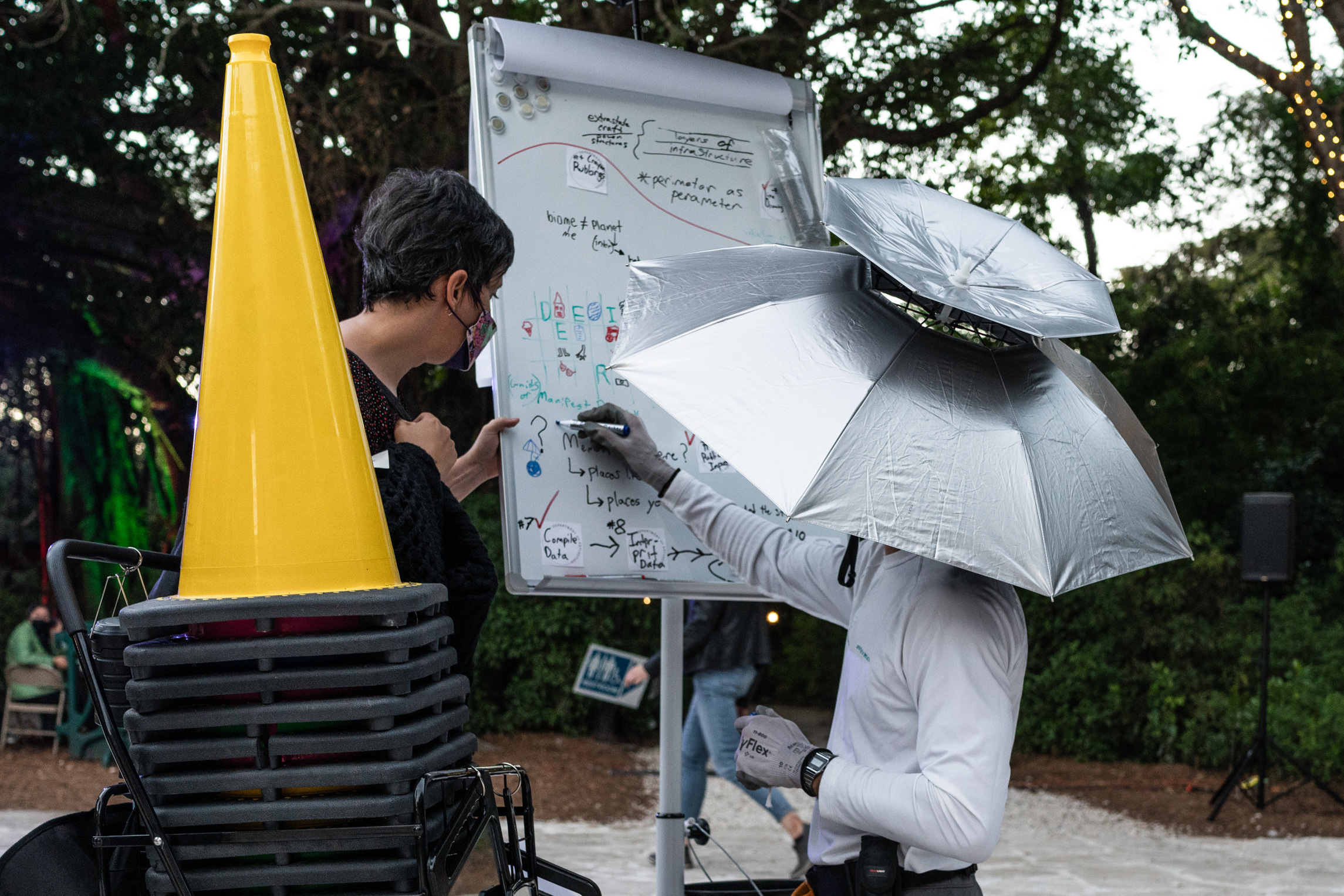 The Department of Reflection’s De-Code Compliance Team has been assessing publicly accessible outdoor areas since the Spring of 2021. Who does our public infrastructure truly serve and how are these dynamics visibly apparent in our common areas? How can we collectively better address these concerns? DoR’s De-Code Compliance Team (currently Jenna Balfe, Najja Moon, and misael soto) conducts exploratory field research to find out the answers to these and other questions via alternative methods. The public is invited to watch and engage with us as we work. Findings are offered to related institutions afterwards.